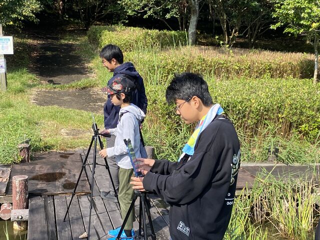 撮影の方法、三脚の使い方や移動する際の注意点などを学び、秋晴れの公園に撮影に出かけました。