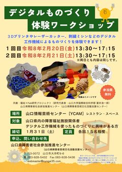 障害者福祉施設における様々な活動に対してデジタルものづくりの導入のきっかけづくり、仕事や表現活動に活かすことができるか、実際に機械を見たり体験したりして一緒に考えてみませんか?